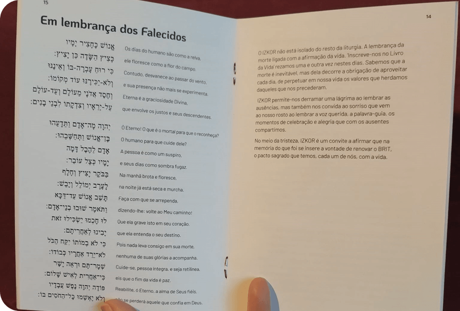 Também recordamos juntos outras datas que não são festivas, mas representam a nossa história de sobrevivência enquanto povo, cultura e religião, como Yom haShoá, Yom haZikaron e Tisha beAv.